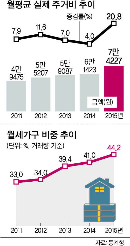 자가주거비를 반영하지 않는 나라가 한국만은 아니다. “유럽 국가들을 비롯해 자가주거비를 반영하지 않는 나라가 더 많다”(통계청 관계자)고 한다. 그렇다고 주거비가 치솟는 한국 상황에서 지금의 물가 산정 방식이 현실을 제대로 반영하는지는 여전히 의문이다. 지난 1월 한은 금통위 의사록을 보면 한 금통위원은 “물가에서 제일 중요한 품목 중 하나가 집세인데 2015년에 아파트 전세 가격이 6% 가까이 올랐으나 소비자물가지수의 집세 기준으로는 2.5% 상승에 그쳤다”며 물가 산정방식에 의문을 나타냈다.