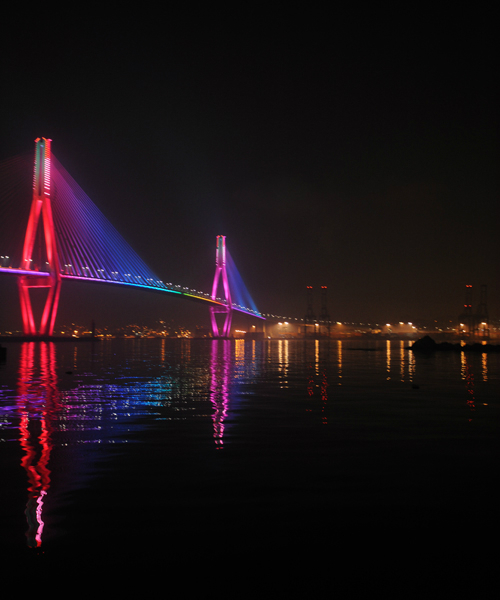 | 부산 영도청학수변공원에서 보이는 부산항대교의 야경. 부산항대교와 건너편 건물들의 불빛이 부산의 밤을 화려하게 밝히고 있다. 야경이 아름다운 부산항대교는 부산의 새로운 명소가 되고 있다. |