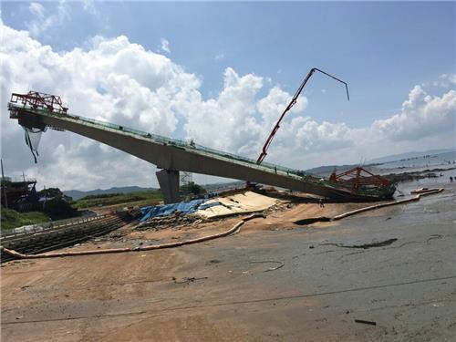 건설 중이던 다리는 가운데 교각을 중심으로 일부 상판이 바다 방향으로 기울듯 무너져 내렸다.
