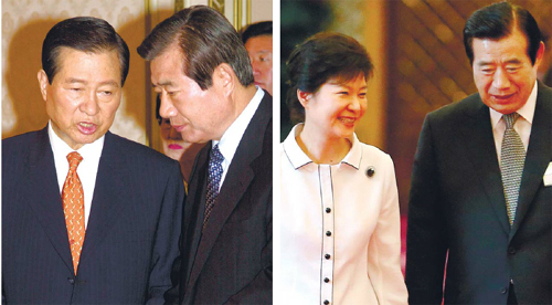 | 한광옥 국민대통합위원장이 최순실 국정농단 파문으로 인한 국정 위기 속에서 17년 만에 다시 대통령 비서실을 이끌게 돼, 1999년 비서실장으로 임명돼 김대중 전 대통령을 보필한 이후 두 명의 대통령을 보좌하는 초유의 기록을 세우게 됐다. 왼쪽은 2001년 8월 청와대에서 열린 한 행사에서 김 전 대통령과 이야기하는 모습, 오른쪽은 2013년 7월 박 대통령과 이야기하며 걸어가는 모습. 연합뉴스 |
