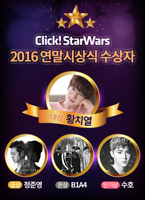 앞서 ‘클릭스타워즈’는 지난 2016년 12월 19일부터 2일 정오까지 2016 연말시상식을 진행했다. 가수 부문은 2016년 빛나는 활약을 보여준 30그룹이 후보에 들었다. 빅뱅, 엑소, 빅스, 비스트, 방탄소년단, B1A4, 젝스키스, 에이핑크, B.A.P(비에이피), 샤이니, 비투비, 세븐틴, AOA(에이오에이), 박보검, 규현, 블락비, 원더걸스, GOT7(갓세븐), 2PM, 여자친구, 레드벨벳, 블랙핑크, 박효신 아이오아이(I.O.I), 인피니트, 황치열, 정준영, 정승환이 이름을 올렸다.