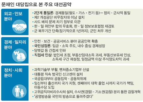 문 전 대표는 대담집에서 사드 배치 문제를 중국과 외교 협상으로 풀겠다는 구상을 밝히기도 했다. 문 전 대표는 “사드 배치의 득과 실을 구체적으로 검토해야 한다”며 “북한이 이렇게 계속 핵실험을 하고 미사일 탑재기술을 고도화하면 한·미동맹 관계를 공고히 하기 위해서도 사드 배치를 충분히 고려할 수 있다는 입장을 중국에 강조해야 한다”고 말했다.