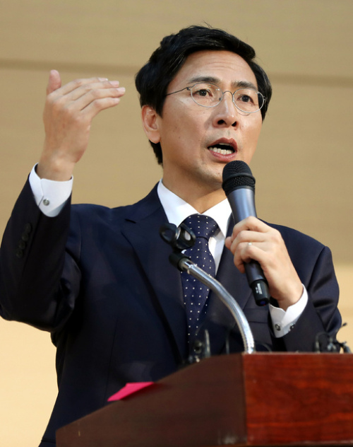 | 이재명 성남시장이 3일 부산시의회 브리핑실에서 기자회견을 열고 각종 현안에 대한 입장을 밝히고 있다. 부산=연합뉴스 |
