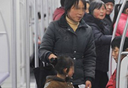 | 중국 상하이 지하철에서 모녀로 보이는 걸인이 구걸하고 있다. 중국 인민망 캡처. |