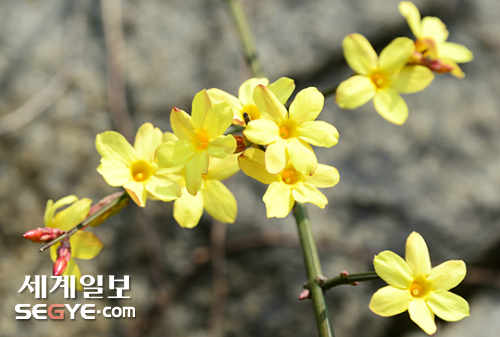 포근한 봄 날씨가 이어진 17일 오후 서울 중구 남산에 봄을 환영하는 노란 영춘화(迎春花)가 꽃망울을 활짝 터트렸다. 봄 꽃으로 알려진 영춘화는 중국이 원산지로 꽃잎이 5, 6장이다.