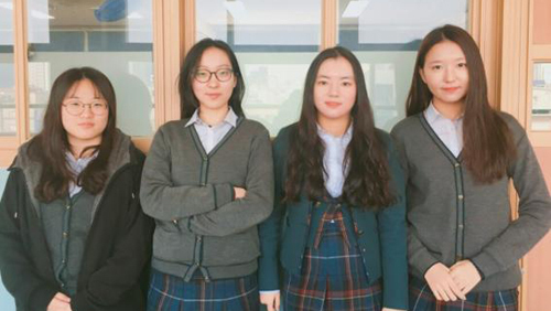 위안부 소녀상 배지를 제작한 박유빈·김민정·김선아·이유리양(왼쪽부터). 성동 평화의 소녀상 건립추진위원회 제공 |