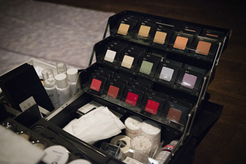| 복안 납관사 오오타 마토카씨의 화장 도구. 일반적인 미용 도구와는 차이가 있다. 일반 화장품에 비해 접착성도 뛰어나고 색조도 밝은 편이라고 한다. 주름을 없애는 일반 화장품과 달리 주름을 표현하는 도구도 갖추고 있다. |