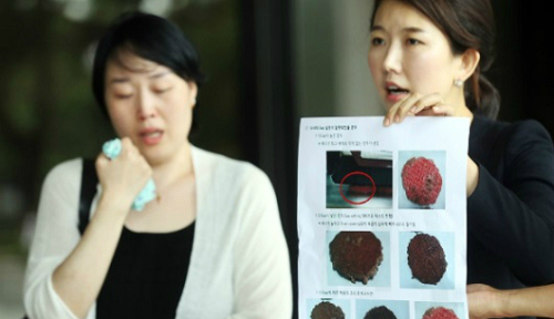 | 지난 5일 고기 패티가 덜 익은 맥도날드 햄버거를 먹고 4살 딸이 HUS(용혈성요독증후군)에 걸렸다고 주장하는 어머니(왼쪽)와 피해자 측 황다연 변호사가 서초구 서울중앙지검 청사 앞에서 맥도날드 한국 지사를 식품안전법 위반 혐의 등으로 고소한 뒤 발병 경위를 설명하고 있다. 연합뉴스 |