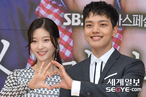 배우 정채연(왼쪽)과 여진구가 18일 오후 서울 양천구 목동 SBS 사옥에서 진행된 SBS '다시 만난 세계' 제작발표회에 참석해 포즈를 취하고 있다.