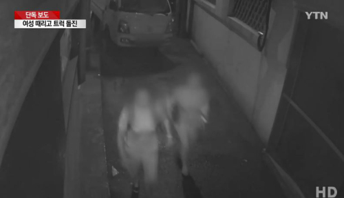 | 지난 18일 서울 신당동의 골목길에서 여자친구를 피투성이가 되도록 폭행한 20대 남성이 폭행을 말린 시민과 여자친구를 향해 트럭을 몰고 돌진하는 모습이 담긴 폐쇄회로(CC) TV 영상. |