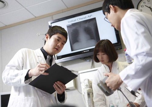 | 자연계 최상위권 학생들이 주로 합격하는 의과대학 문턱이 올해는 다소 낮아졌다. 의학전문대학원에서 학부 체제로 복귀하는 대학이 늘고 지방의대의 지역인재 선발 규모가 상향 조정될 가능성이 커졌기 때문이다. 사진은 가톨릭대 의대 학생들이 교내 스타트 의학시뮬레이션센터에서 실습하고 있는 모습. 세계일보 자료사진 |