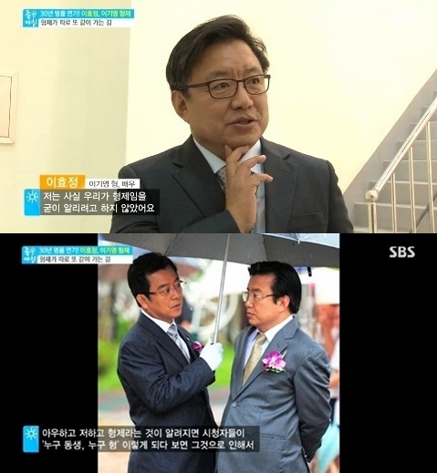 이유진의 아버지 이효정이 과거 SBS '좋은 아침'에 출연해 동생 이기영과 형제인 사실을 공개하지 않은 이유를 밝히고 있다. 사진=SBS 캡처