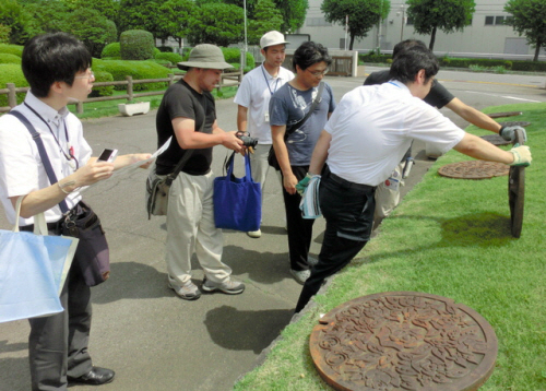 | 맨홀 뚜껑 판매 현장. 멀리 도쿄에서도 뚜껑을 구매하기 위해 이곳을 찾았다. |