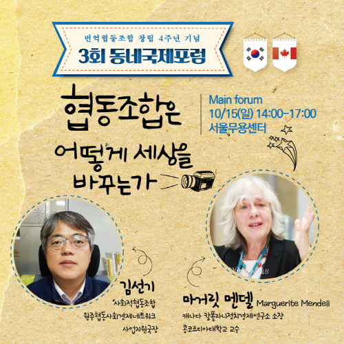 최근에는 우리나라에서도 사회적경제와 협동조합에 대한 관심이 높아지고 있는 가운데, 실제로 현장에서 활동하고 있는 사람들이 함께 생각을 나누는 특별한 자리가 마련돼 눈길을 끌고 있다. 번역협동조합을 비롯해 25개 사회적경제 단체와 지역주민들이 함께하는 ‘제3회 동네국제포럼’이 오는 10월 14일(토), 15일(일) 양일간 서대문구 사회적경제 마을센터와 서울무용센터에서 개최된다.
