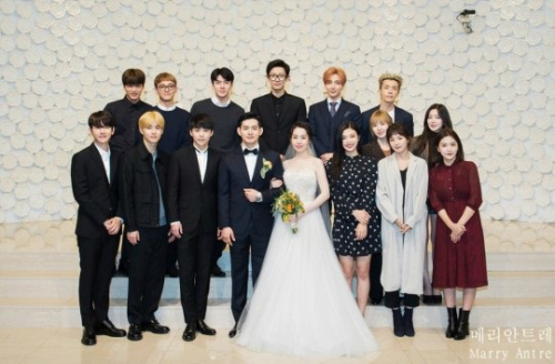지난 21일 서울 강남 모처에서 진행된 결혼식에는 SM엔터테인먼트 소속 가수들이 참석해 자리를 빛냈다.
