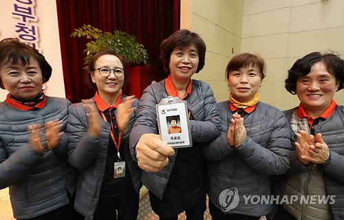미화업무를 하는 방정숙 씨는 "지난 2주간 정규직전환신청서를 쓰고 면접을 보면서 심사를 받았는데 취업준비생의 심정이었다"며 "솔직히 '비정규직 제로'라는 이야기를 듣고 반신반의했는데 이제 정부청사 직원이라고 당당히 말할 수 있게 됐다"고 했다.