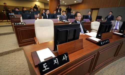 | 6일 오후 충남 홍성군 충남도의회 본회의장에서 열린 제302회 임시회 제1차 본회의에 안희정 전 도지사의 자리가 비어 있다. |