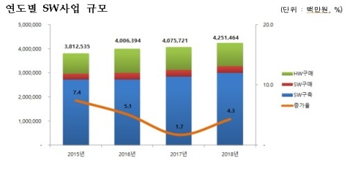 노경원 과기정통부 소프트웨어정책관은 “80억원 이상 대형 신규개발사업이 늘어났다”며 “4차 산업혁명 대응을 선도할 혁신성장동력이 사업화 된 것”이라고 설명했다.