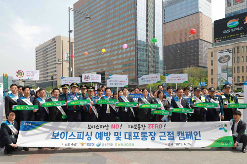 농협상호금융(대표이사 소성모)은 26일 광화문 광장 일원에서 소성모 대표이사와 금감원, 경찰청 및 농협 임직원 40여명이 참석한 가운데 시민들을 대상으로 전단지 및 황사방지 마스크를 나눠주며 보이스피싱 예방 및 대포통장 근절 캠페인을 실시하였다.