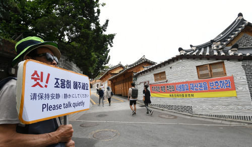 대책 마련 호소 현수막 내건 북촌한옥마을 주민들