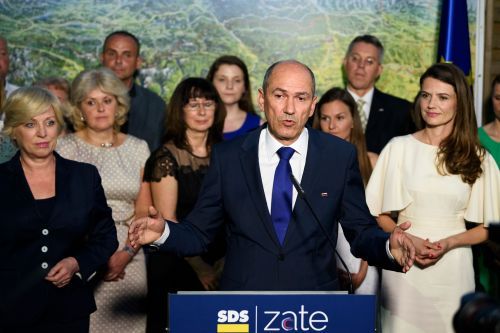 | 야네즈 얀샤 전 슬로베니아 총리(가운데)가 3일(현지시간) 실시된 총선에서 자신이 이끄는 슬로베니아민주당(SDS)이 승리한 것으로 나타나자 수도 류블랴나에서 성명을 발표하고 있다. 류블랴나=AFP연합뉴스 |