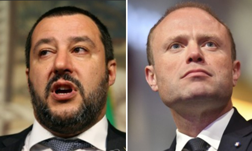 | 살비니 伊 부총리(왼쪽), 무스카트 몰타 총리 |