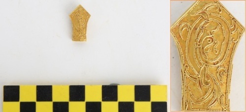 연구소 관계자는 “능산리 서고분군 전모를 파악하기 위해 시작한 이번 발굴에서 일제강점기 조사와 도굴로 유물은 거의 남지 않았다”며 “2호분 돌방 바깥에서 나온 금제 장식은 길이가 2.3㎝에 불과하나, 끝이 뾰족한 오각형이고 장식이 화려해 부장품 일부로 추정된다”고 설명했다. 금제 장식과 함께 찾은 목관 조각은 일본 특산종으로 무령왕릉 목관 수종과 같은 금송으로 확인됐다.