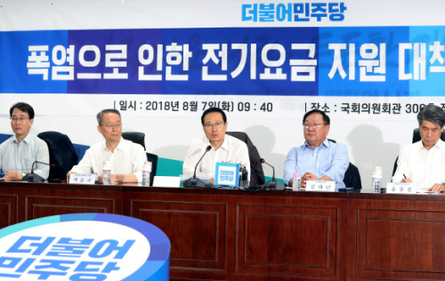 김태년 정책위의장은 "누진세 때문에 전기요금이 무서워 에어컨이 장식품이 돼선 안 된다"며 "누진제 개선을 중장기 과제로 당정이 계속 논의하겠다"고 했다.