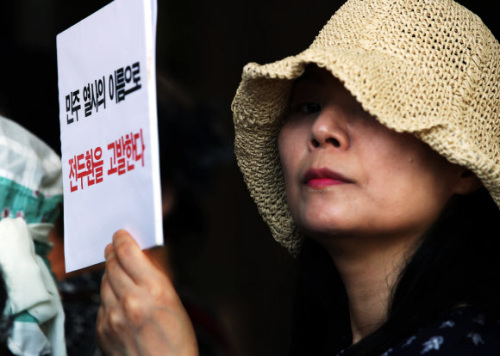 | 22일 오전 서울중앙지검에서 민주화 운동·민주 열사 유가족 단체 및 시민사회단체가 전두환 전 대통령 고발 기자회견을 하고 있다. 연합뉴스 |