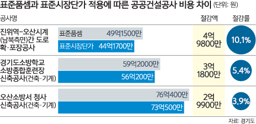 실제 도가 최근 2년간 표준품셈 방식으로 시행한 계약금액 10억원 이상 100억원 미만 발주 공공건설공사 32건을 표준시장 단가를 적용해 공사비를 재산출해 본 결과 4.5%의 예산을 절감할 수 있었던 것으로 나타났다고 덧붙였다.