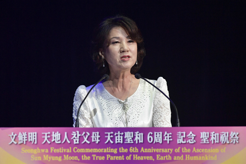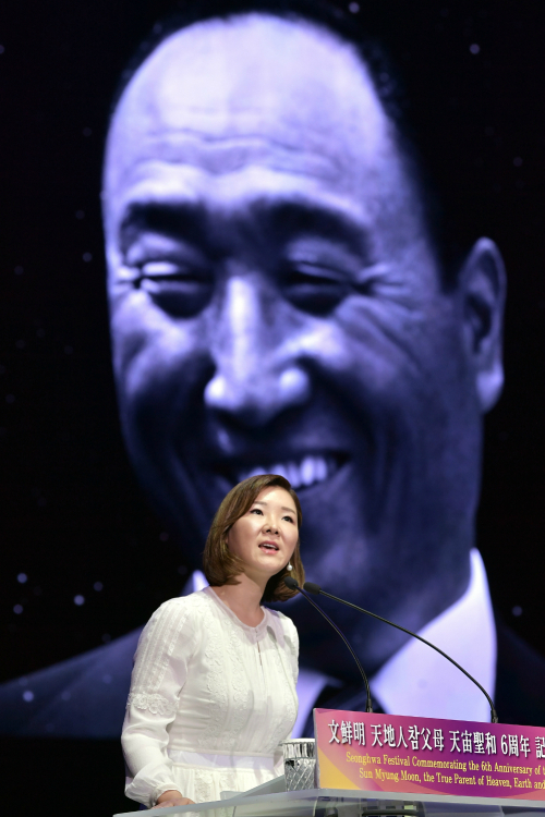 문 세계회장은 성화사를 통해 “아버님이신 문선명 총재는 모든 만물을 위한 하늘의 진리, 하나님의 본질, 우리의 영원한 영인체, 타락, 구원, 참사랑, 복귀, 그리고 완성으로 저희들을 일깨워주셨다”고 회고했다.