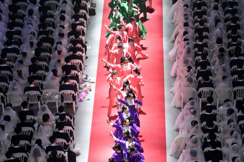 국제합동결혼식은 말미에 유명 성악가 폴 포츠와 한국 리틀엔젤스 단원들이 축가를 부른 뒤 마이클 밸컴 신유럽가정연합 총회장의 억만세 삼창으로 마무리됐다.
