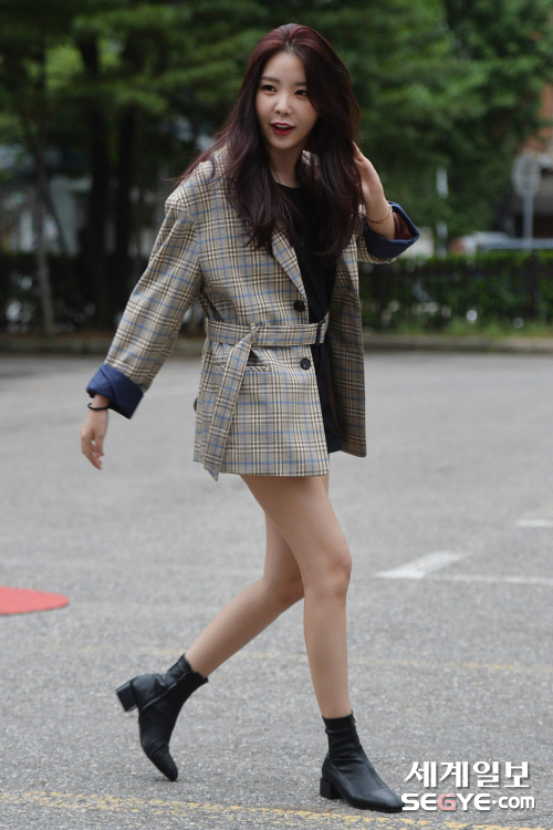 가수 레이나가 31일 오전 서울 여의도 KBS 신관 공개홀에서 열린 KBS 2TV '뮤직뱅크' 의 리허설에 참석해 무대로 이동하고 있다.