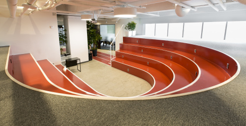 | 우아한형제 사옥은 소통과 혁신을 구현하기 위해 육상경기장처럼 꾸몄다. |