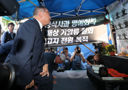 교섭에 앞서 최 사장은 이날 오후 2시쯤 문 위원장, 김 지부장 등과 함께 서울 중구 대한문 앞에 마련된 쌍용차 해고노동자 고(故) 김주중씨를 추모하는 분향소를 찾았다. 사측 대표가 분향소를 방문한 것은 2009년 쌍용차 사태 이후 이번이 처음이다.