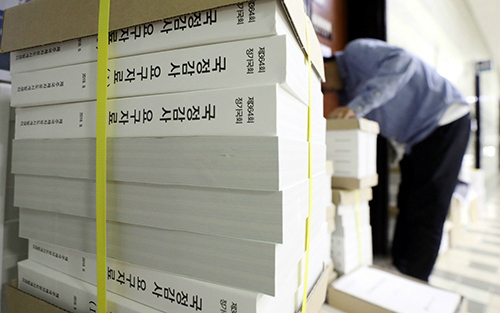 국회 후반기 첫 국정감사를 사흘 앞둔 7일 국회 한 상임위원회 관계자가 피감기관이 제출한 자료집을 살펴보고 있다. 국회 14개 상임위의 올 국정감사는 오는 10일부터 29일까지 실시된다.