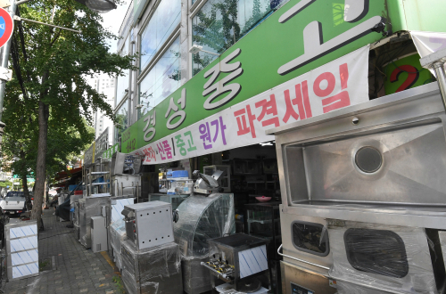 | 서울 중구 서울중앙시장의 중고 주방용품 상점에 폐업한 음식점에서 사들인 중고 주방용품들이 잔뜩 쌓여있다. 세계일보 자료사진 |