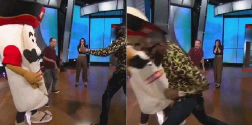 복싱챔피언이 TV쇼 마스코트에게 강펀치를 날려 중상을 입혔다.