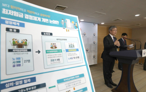 이재갑 고용노동부장관이 7일 오후 서울 종로구 정부서울청사 브리핑룸에서 최저임금 결정체계 개편 논의안에 대해 브리핑 하고 있다.