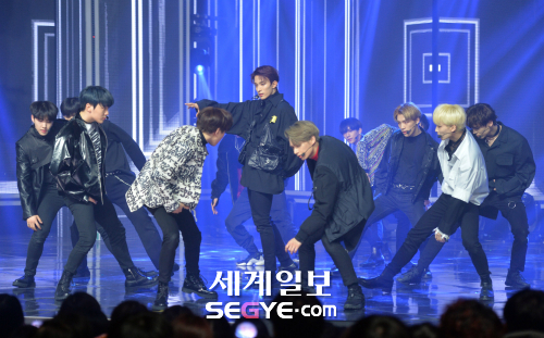 그룹 세븐틴이 30일 오후 경기도 고양시 장항동 MBC 드림센터에서 열린 MBC Music '쇼 챔피언'의 현장공개에 참석해 열띤 공연을 펼치고 있다.