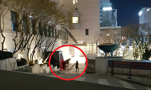 | 지난 8일 오전 0시쯤 서울 강남구 르메르디앙 호텔의 지하 클럽 '버닝썬' 입구에 보안요원으로 보이는 종업원들이 지켜서고 있다. |
