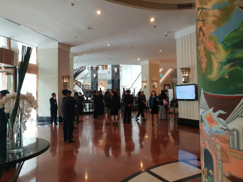| 1일 오후 베트남 하노이 멜리아 호텔에서 노광철 북한 인민무력상, 현송월 북한 삼지연관현악단 단장 등이 대화를 나누고 있다. 하노이=홍주형 기자 |