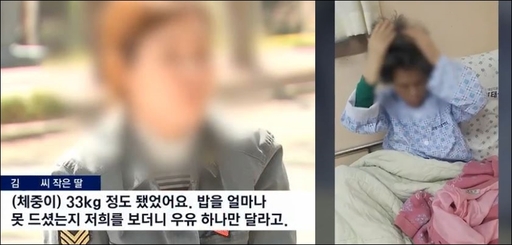 김씨의 큰딸은 “엄마의 체중이 33kg 정도 됐었다. 밥을 얼마나 못 드셨는지 저희를 보더니 우유 하나만 달라고 했다.