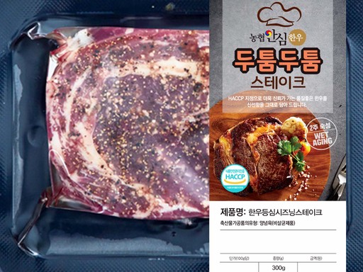 ‘두툼두툼 스테이크’는 농협안심한우 1등급을 저온 숙성실에서 2주간 숙성하고, 3cm이상의 두툼한 두께로 가공해 풍부한 육즙과 부드러운 육질에 한우 본연의 감칠맛을 더했다.