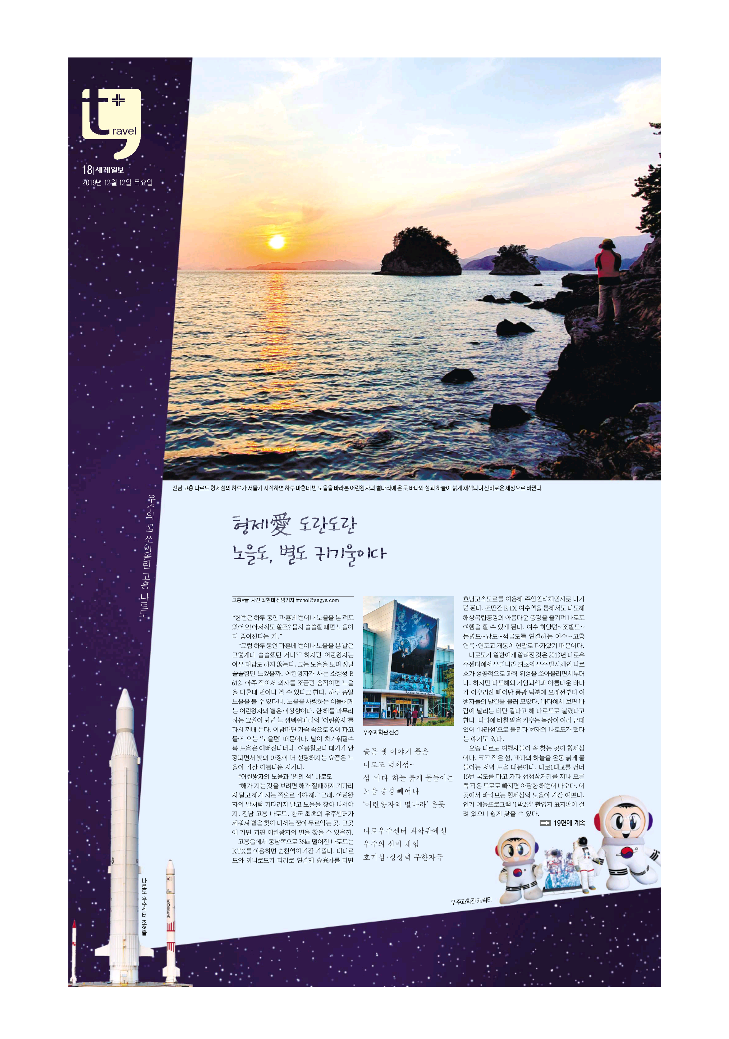 형제愛 도란도란 노을도, 별도 귀기울이다/슬픈 옛 이아기 품은 나로도 형제섬/섬·바다·하늘 붉게 물들이는 노을 풍경 빼어나 ‘어린왕자의 별나라’ 온 듯/나로우주센터 과학관에선 우주의 신비 체험 호기심·상상력 무한자극