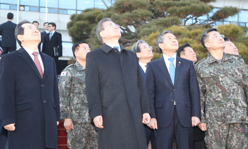 실제로 국방부는 이날 국방과학연구소(ADD)가 개발 중인 레이저 대공무기 시제품을 처음으로 선보여 주목을 받았다. 2023년까지 전력화할 예정인 레이저 대공무기는 빔을 표적에 집중적으로 조사(照射·겨냥해서 비춤)해 격추하는 안티 드론이다. 문 대통령은 또 국방부가 추진 중인 4차 산업혁명 기반 스마트 국방혁신 훈련체계도 지켜봤다. 5면을 둘러싼 대형 스크린에 전장 화면을 구현한 소규모 과학화 훈련시스템을 지켜본 문 대통령은 “가상현실로 실전과 같은 훈련이 가능할 것 같다”면서 “게임 산업에 활용할 수도 있겠다”고 평가했다.