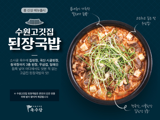 국밥 브랜드 ‘육수당’이 봄 시즌 신메뉴로 ‘수원고깃집 된장국밥’을 출시했다고 9일 밝혔다.