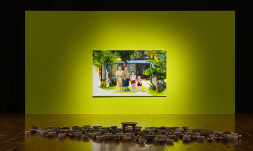 문지영의 공간엔 초기 연작 ‘가장 보통의 존재’ 중 한 구작과 ‘엄마의 신전’ 연작의 신작들이 어우러졌다. 그는 발달장애를 가진 여동생과 투병생활을 했던 엄마 등 여성과 가족, 약자의 교집합에 속한 인물을 줄기차게 그리며 ‘보통’이라는 사회적 기준을 반문해온 작가다.