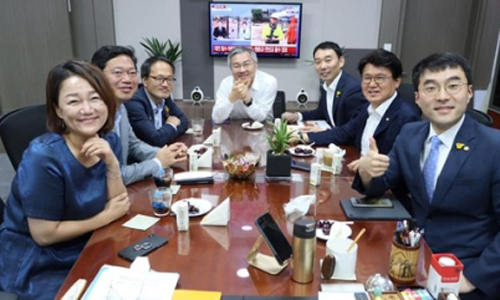 열린민주당 최강욱 대표가 30일 페이스북에 올린 ‘처럼회’ 회원들과 더불어민주당 박주민·이재정 의원 사진. 오른쪽 두번째가 대전 중구를 지역구로 둔 민주당 황운하 의원. 페이스북 캡쳐