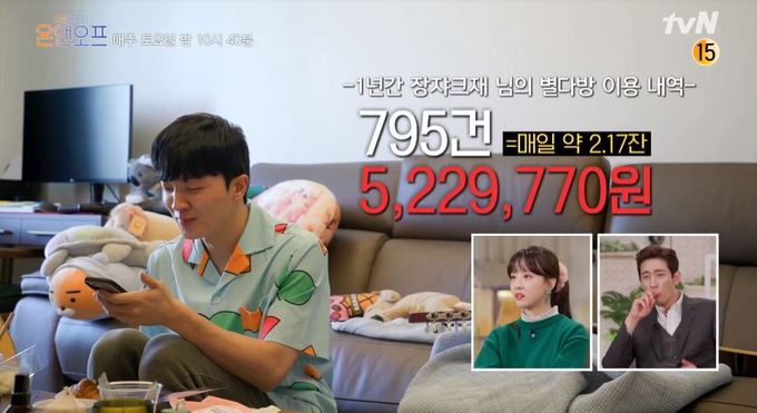 한편 적재는 2020년 별다방 이용내역도 공개했는데, 그의 올해 별다방 주문 건수만 795건에 달한다고. 이어 적재는 “총 사용 금액이 약 522만9770원”이라고 밝혀 현장에 있던 이들을 경악케 했다. 이에 김민아는 “기타 한 대 값이다“라며 놀라움을 감추지 못했다.